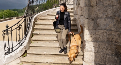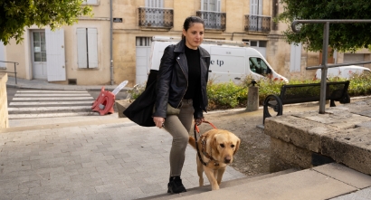 « Je suis masseuse, j’adore mon métier ! Pyla sécurise mes déplacements en ville, et m'aide à éviter les obstacles, traverser les passages piétons et monter les escaliers jusqu’à mon travail. Notre quotidien est riche, mais la sécurité reste prioritaire ! »