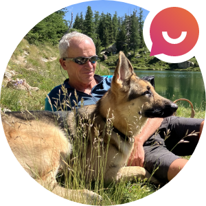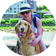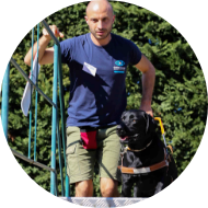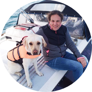 « Je ne suis pas du matin, heureusement Pyla l’est ! Elle me fait la fête et notre aventure du jour commence ! Je suis épatée par les 50 ordres qu’elle a appris ! Avec une éducation positive et de la patience, son éducateur diplômé lui a enseigné à me guider en toute situation. »